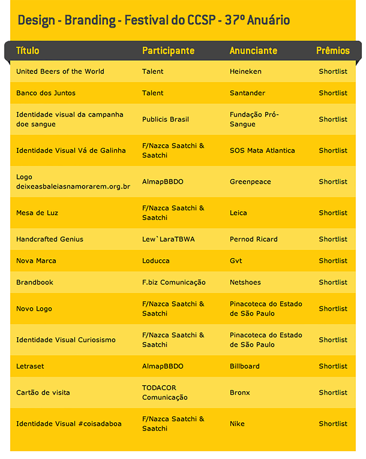 Shortlist no 37º Anuário do Clube de Criação (CCSP)